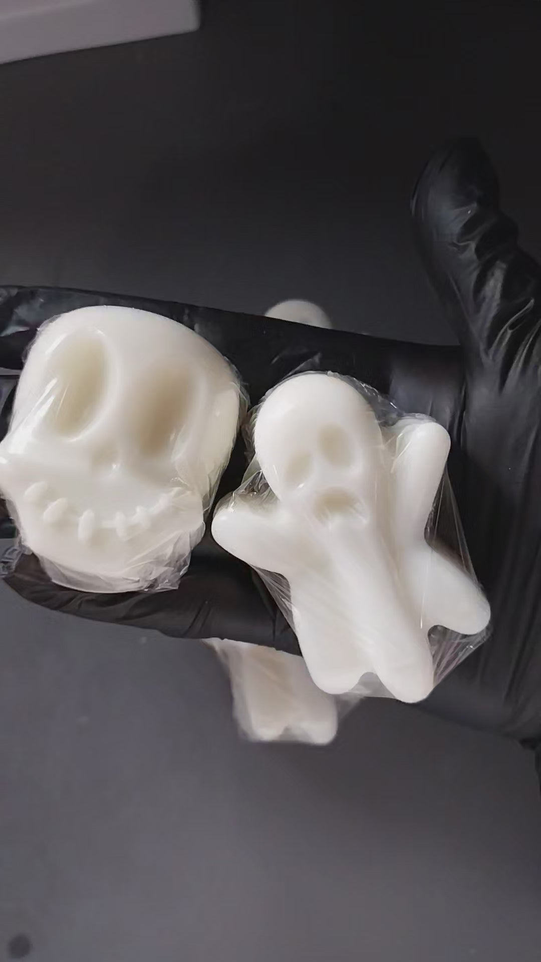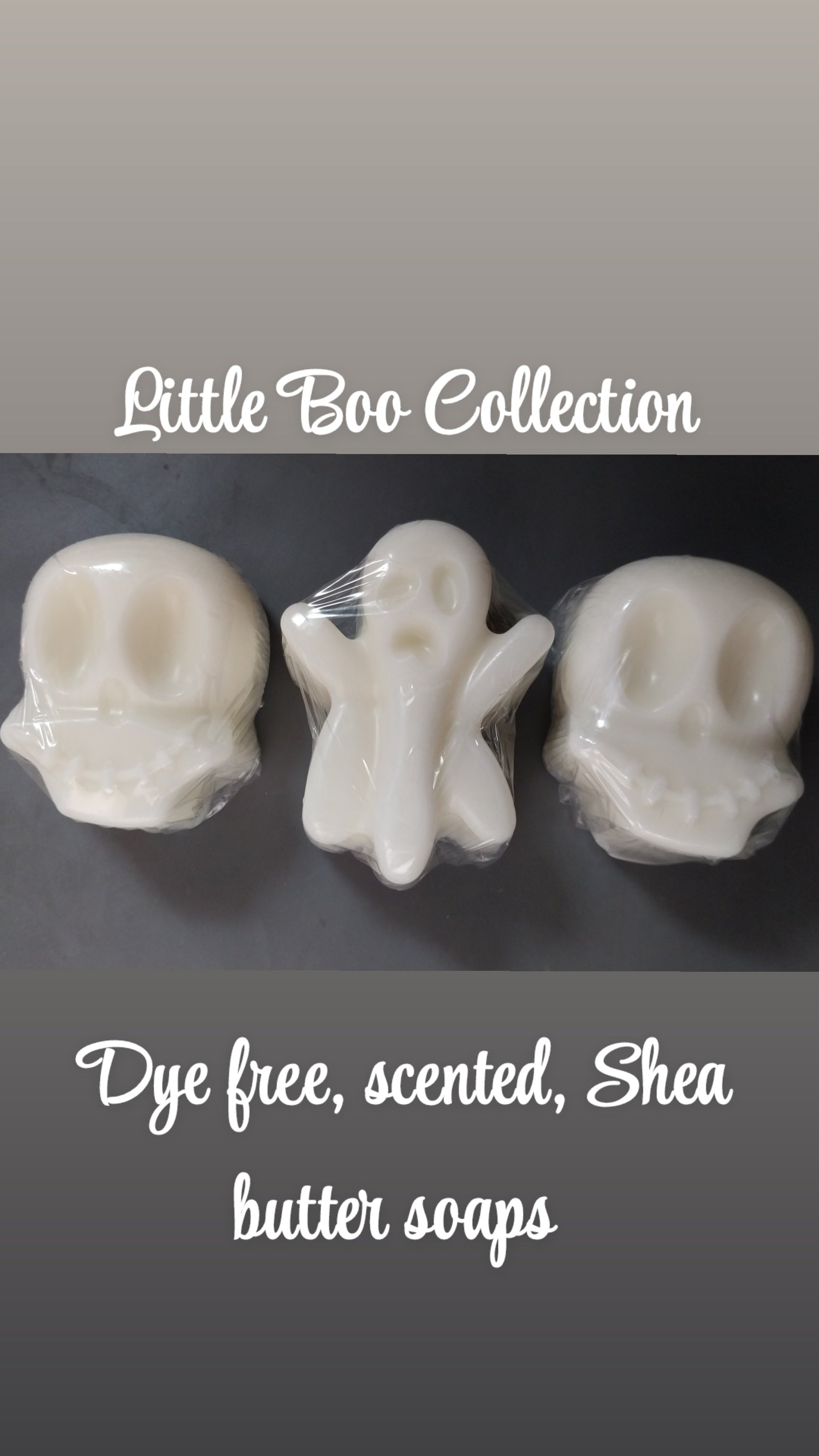 Phthalates and parabens free fragrance oil. Dye free!! Shea butter little spooky soaps. In 2 spooky designs.